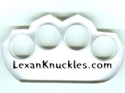 The ultimate in self defense. Clear Lexan knuckles, strong as brass. Don't let 'em know what hit 'em. They won't even see it coming with our unique awesome, ultra-strong, Lexan, Clear Knuckles.